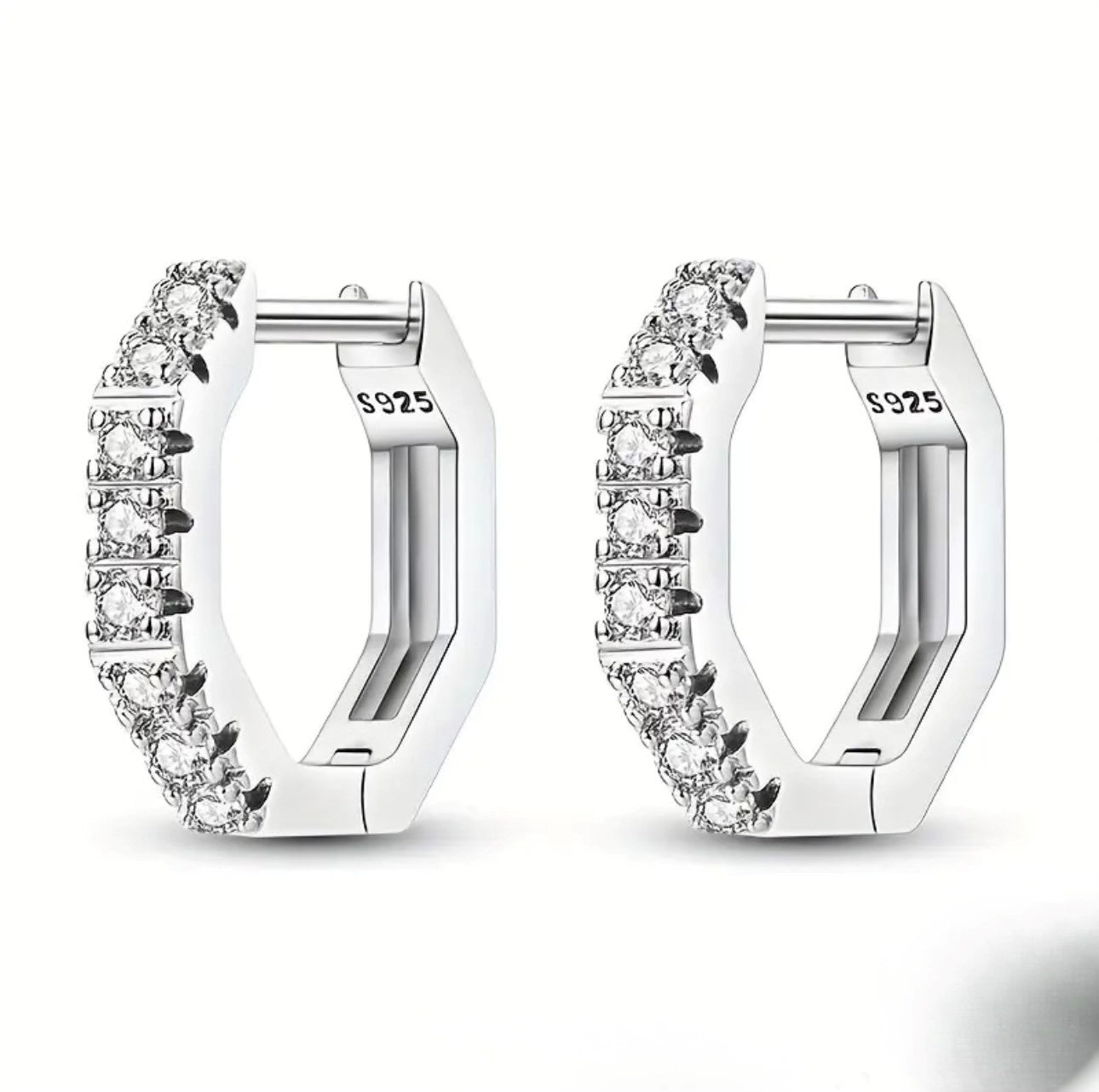 Eleganti Orecchini a Cerchio in Argento con Cristalli Brillanti