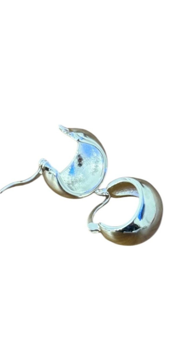 Orecchini a cerchio in argento, dal design bombato e lucido, con chiusura a clip. Eleganza semplice e raffinata.