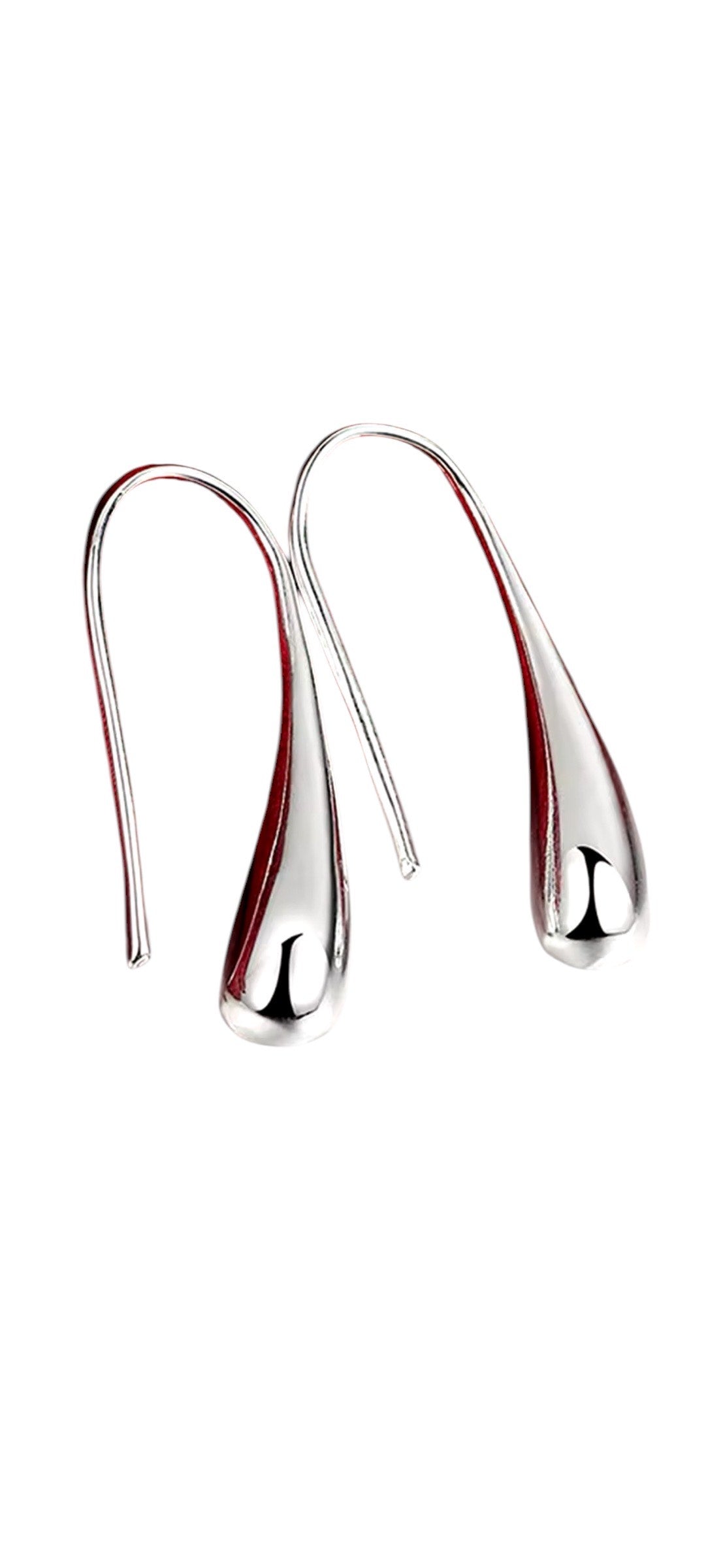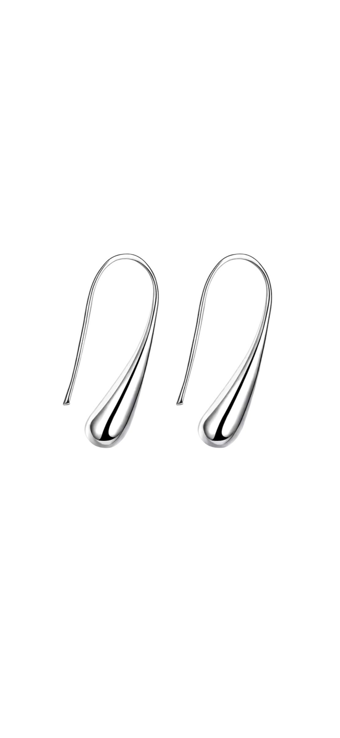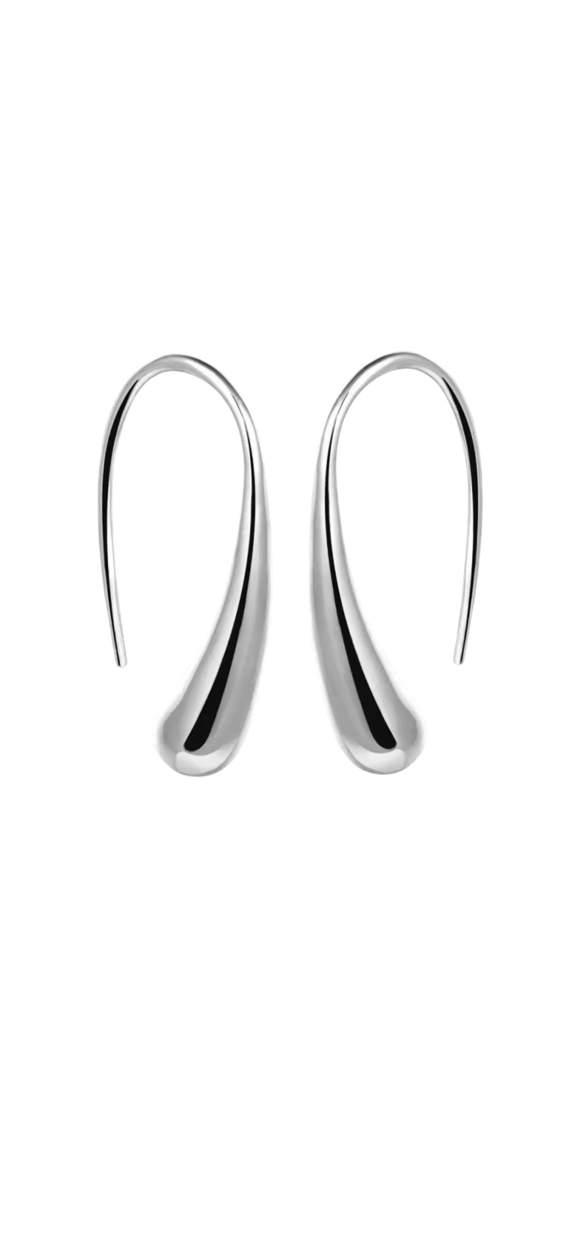 Orecchini pendenti in argento a forma di goccia, dal design elegante e moderno con linee fluide e minimaliste.